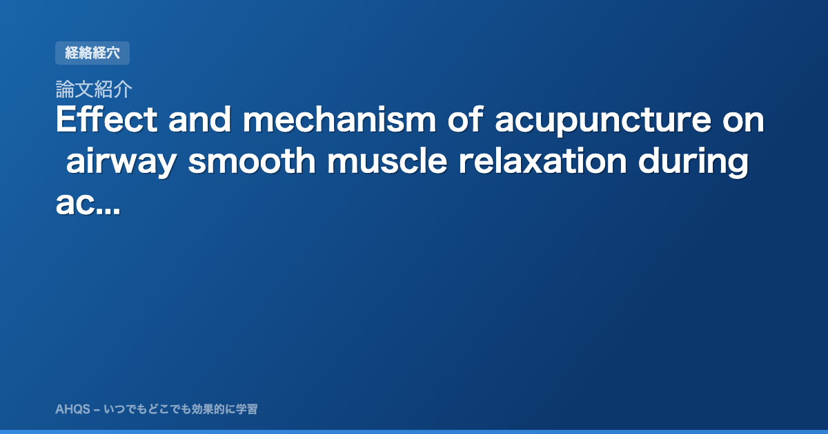 論文紹介:Effect and mechanism of acupuncture on airway smooth muscle relaxation during acute asthma attack in rats ― ラット急性喘息発作時の気道平滑筋弛緩に対する鍼治療の効果とメカニズム