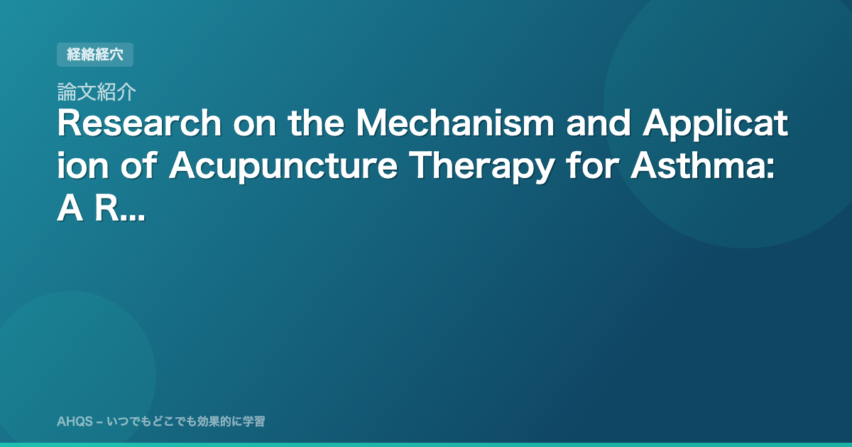 本総説は、鍼治療が喘息に対して中枢神経系から細胞内機構、免疫応答、化学シグナルまで多層的に作用し、急性発作の緩和から慢性リモデリング抑制まで幅広い効果を示すことを明らかにしました。