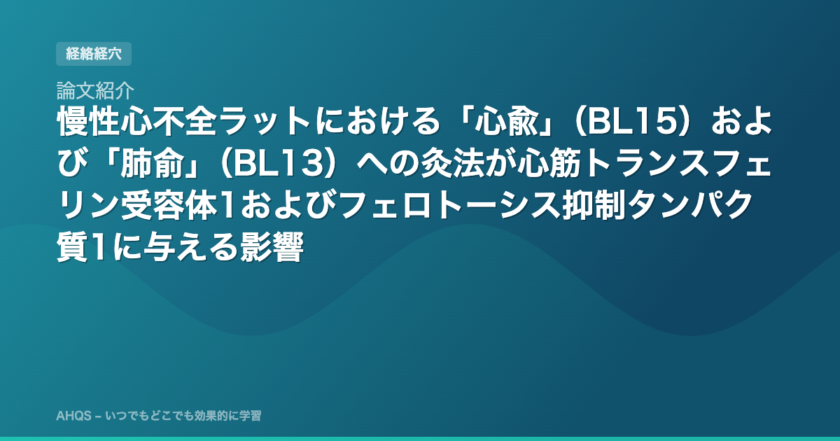 「慢性心不全ラットにおける「心兪」(BL15)および「肺俞」(BL13)への灸法が心筋トランスフェリン受容体1およびフェロトーシス抑制タンパク質1に与える影響」