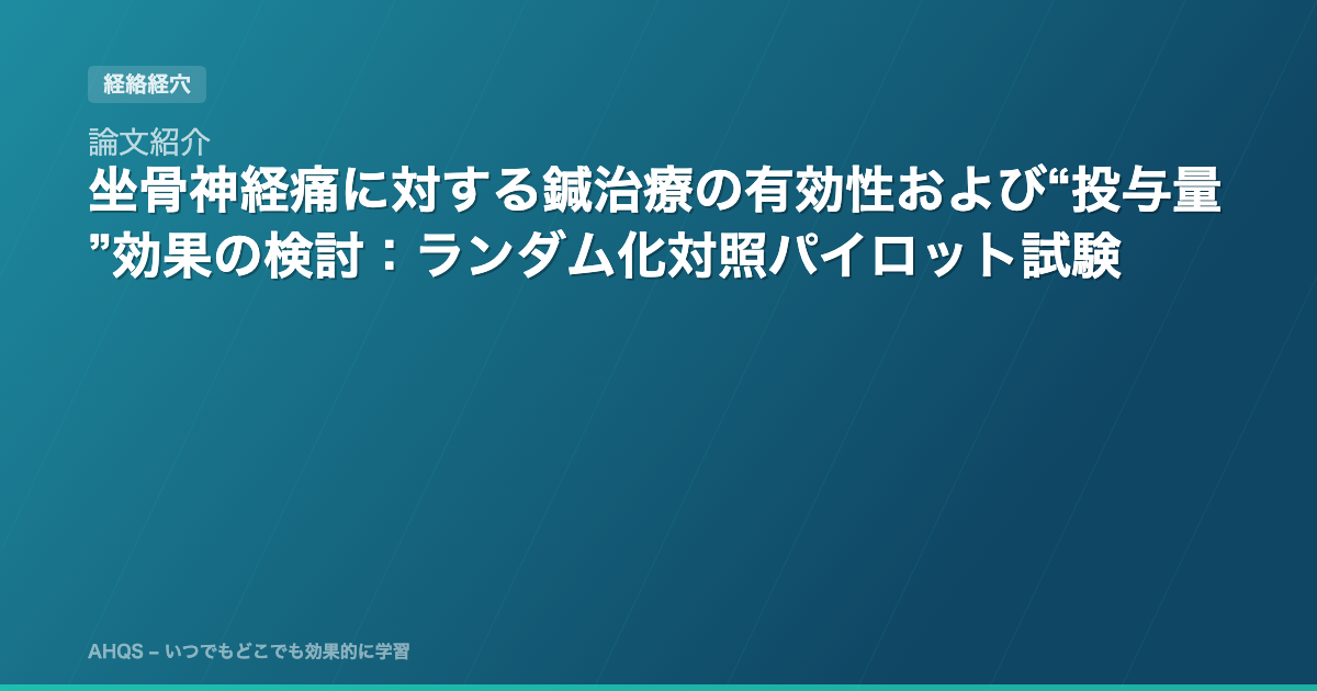 「坐骨神経痛に対する鍼治療の有効性および“投与量”効果の検討:ランダム化対照パイロット試験」