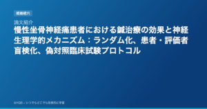 偽鍼対照:Streitberger偽鍼器を用い、皮膚非刺入でプラセボ効果を担保。