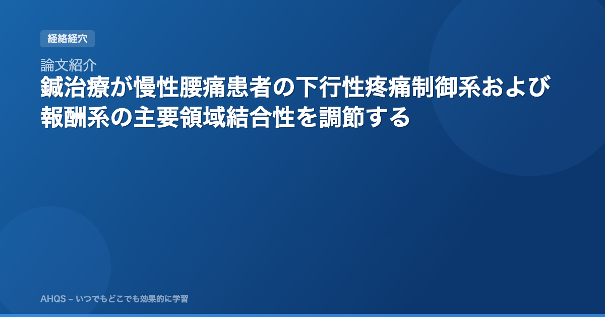 「鍼治療が慢性腰痛患者の下行性疼痛制御系および報酬系の主要領域結合性を調節する」