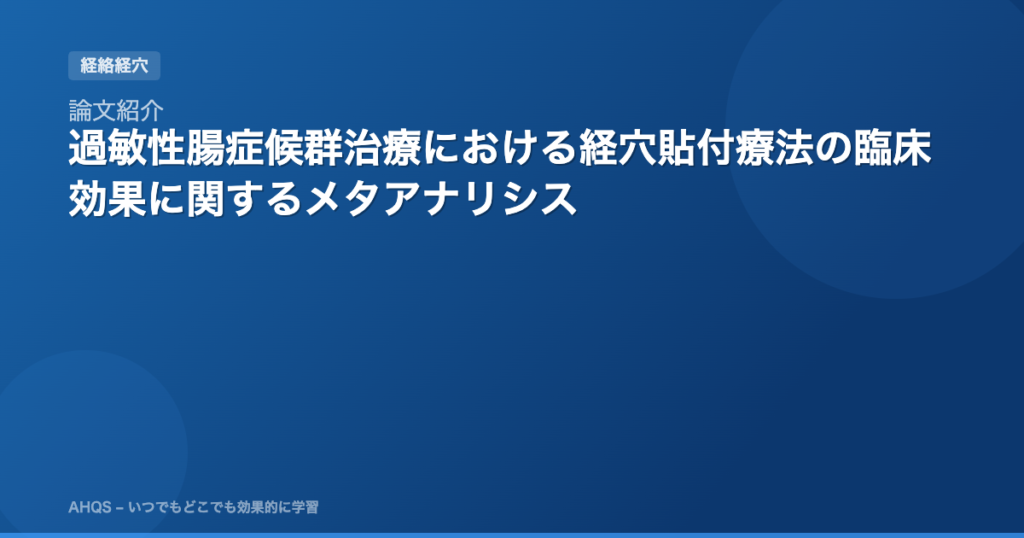 論文紹介:Meta analysis of clinical efficacy of acupoint application in the treatment of irritable bowel syndrome 「過敏性腸症候群治療における経穴貼付療法の臨床効果に関するメタアナリシス」