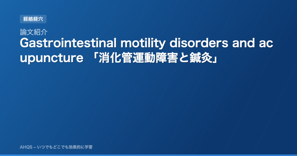 論文紹介:Gastrointestinal motility disorders and acupuncture 「消化管運動障害と鍼灸」