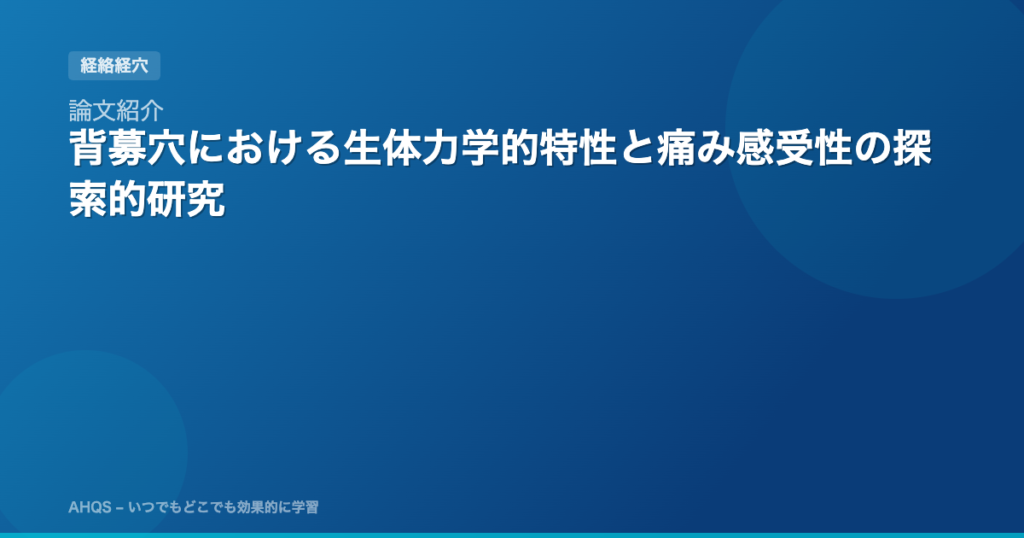 論文紹介:Exploratory Study of Biomechanical Properties and Pain Sensitivity at Back-Shu Points「背募穴における生体力学的特性と痛み感受性の探索的研究」