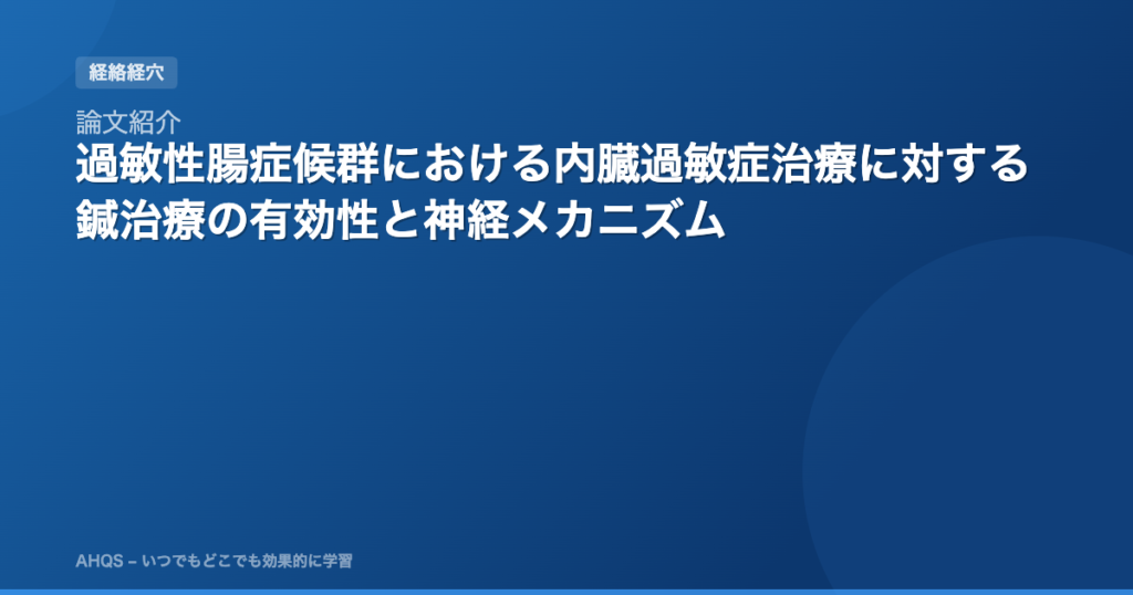 論文紹介:The efficacy and neural mechanism of acupuncture therapy in the treatment of visceral hypersensitivity in irritable bowel syndrome「過敏性腸症候群における内臓過敏症治療に対する鍼治療の有効性と神経メカニズム」