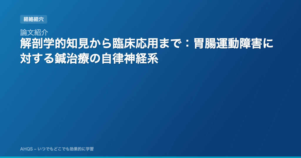 論文紹介:The Autonomic Nervous System in Acupuncture for Gastrointestinal Dysmotility: From Anatomical Insights to Clinical Medicine「解剖学的知見から臨床応用まで:胃腸運動障害に対する鍼治療の自律神経系」