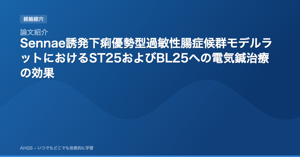 論文紹介:Effects of electroacupuncture at ST25 and BL25 in a Sennae-induced rat model of diarrhoea-predominant irritable bowel syndrome「Sennae誘発下痢優勢型過敏性腸症候群モデルラットにおけるST25およびBL25への電気鍼治療の効果」