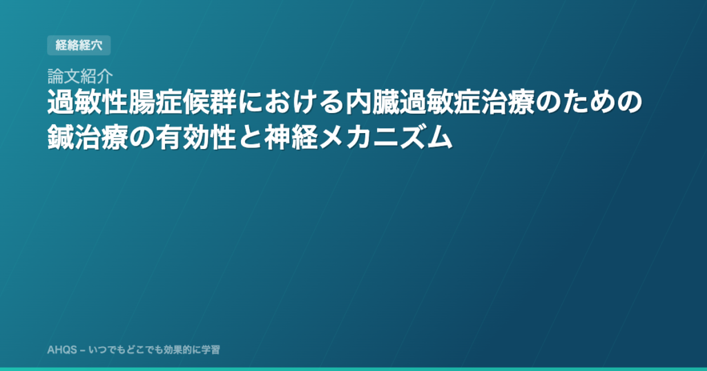 論文紹介:The efficacy and neural mechanism of acupuncture therapy in the treatment of visceral hypersensitivity in irritable bowel syndrome「過敏性腸症候群における内臓過敏症治療のための鍼治療の有効性と神経メカニズム」