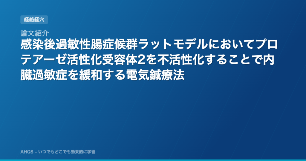 論文紹介:Electroacupuncture Relieves Visceral Hypersensitivity by Inactivating Protease-Activated Receptor 2 in a Rat Model of Postinfectious Irritable Bowel Syndrome 「感染後過敏性腸症候群ラットモデルにおいてプロテアーゼ活性化受容体2を不活性化することで内臓過敏症を緩和する電気鍼療法」