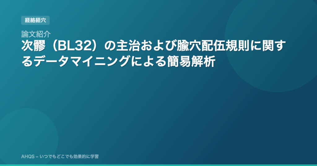 論文紹介:Brief analysis on main indications and compatibility rules of Ciliao (BL 32) based on data mining「次髎(BL32)の主治および腧穴配伍規則に関するデータマイニングによる簡易解析」