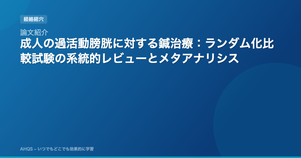 論文紹介:Acupuncture for adults with overactive bladder: A systematic review and meta-analysis of randomized controlled trials「成人の過活動膀胱に対する鍼治療:ランダム化比較試験の系統的レビューとメタアナリシス」