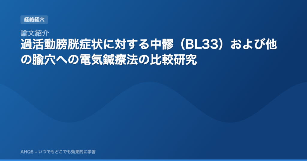 論文紹介:Electroacupuncture at Zhongliao (BL33) and Other Acupoints for Overactive Bladder Symptoms 「過活動膀胱症状に対する中髎(BL33)および他の腧穴への電気鍼療法の比較研究」