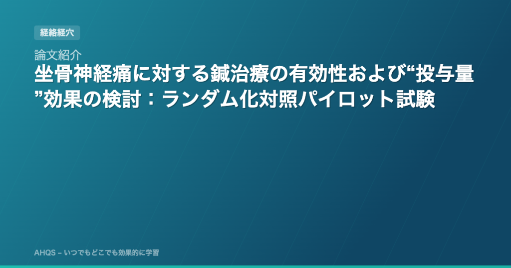 論文紹介:Therapeutic Efficacy and the Impact of the “Dose” Effect of Acupuncture to Treat Sciatica: A Randomized Controlled Pilot Study「坐骨神経痛に対する鍼治療の有効性および“投与量”効果の検討:ランダム化対照パイロット試験」