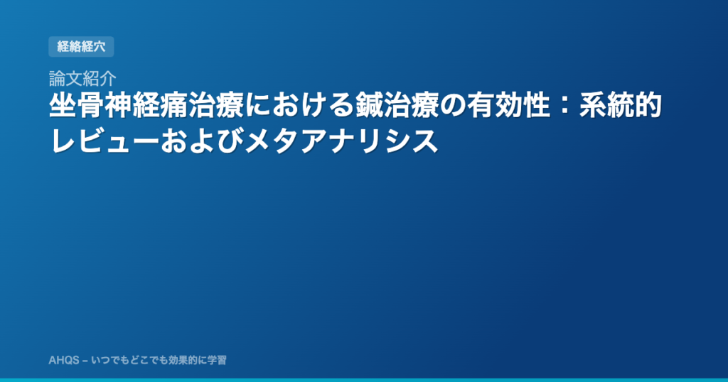 論文紹介:The Efficacy of Acupuncture for the Treatment of Sciatica: A Systematic Review and Meta-Analysis「坐骨神経痛治療における鍼治療の有効性:系統的レビューおよびメタアナリシス」